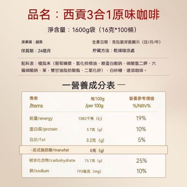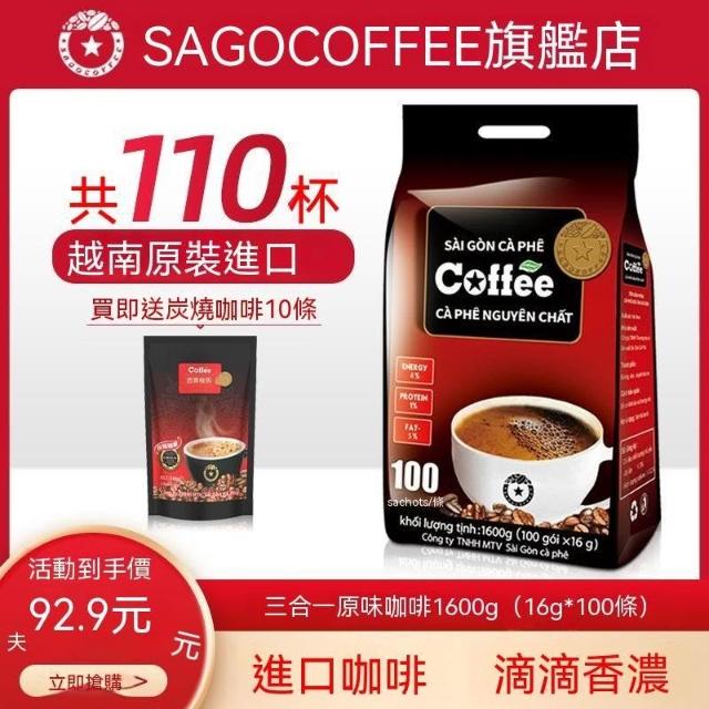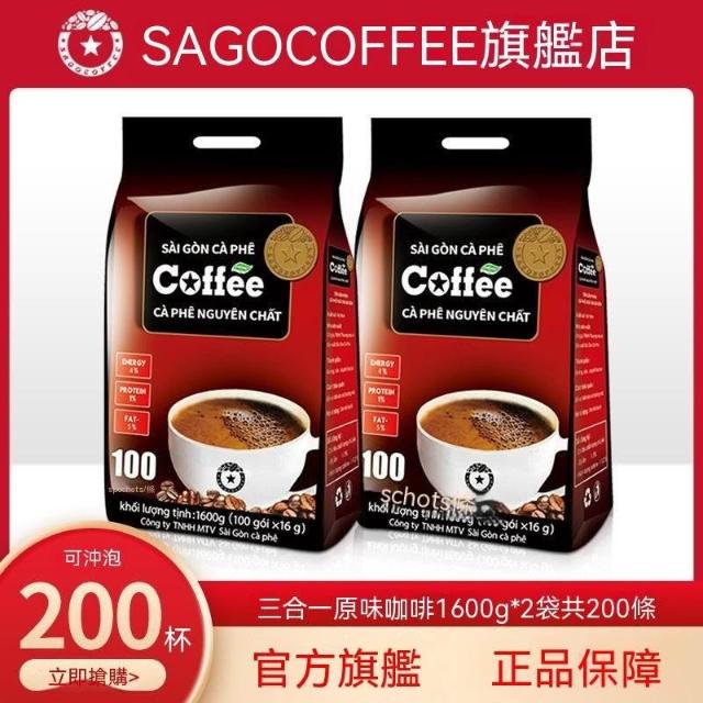 越南西貢原味咖啡1600g進口三合一速溶咖啡粉大袋裝100條沖泡飲品
