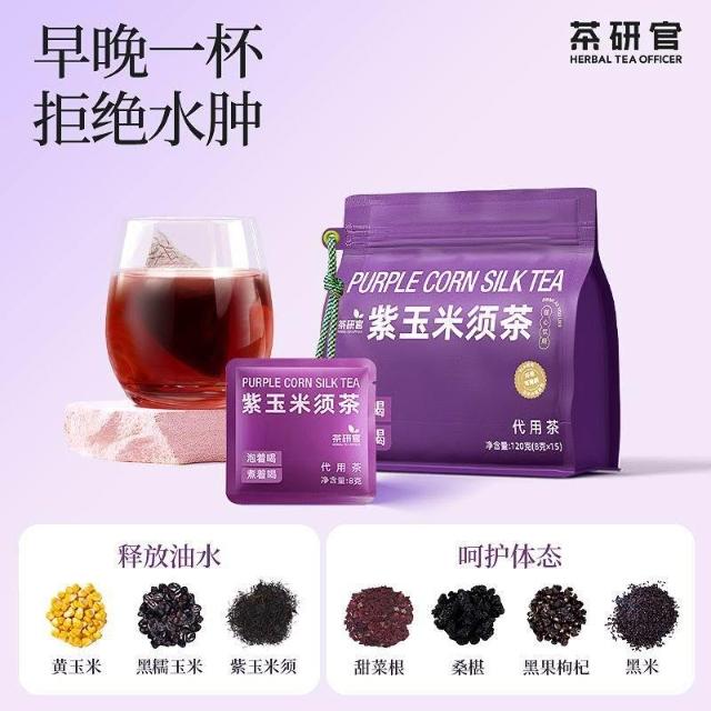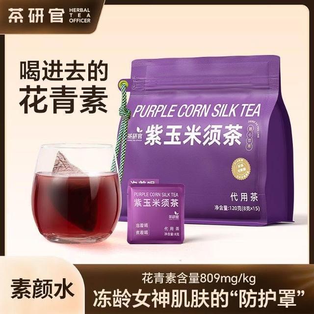 单单優選茶研官紫玉米鬚茶花青素熬夜女性養生茶玉米鬚茶黑米黑枸杞桑葚茶