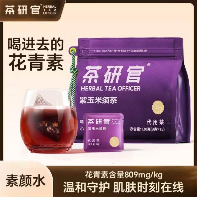 单单優選茶研官紫玉米鬚茶花青素熬夜女性養生茶玉米鬚茶黑米黑枸杞桑葚茶