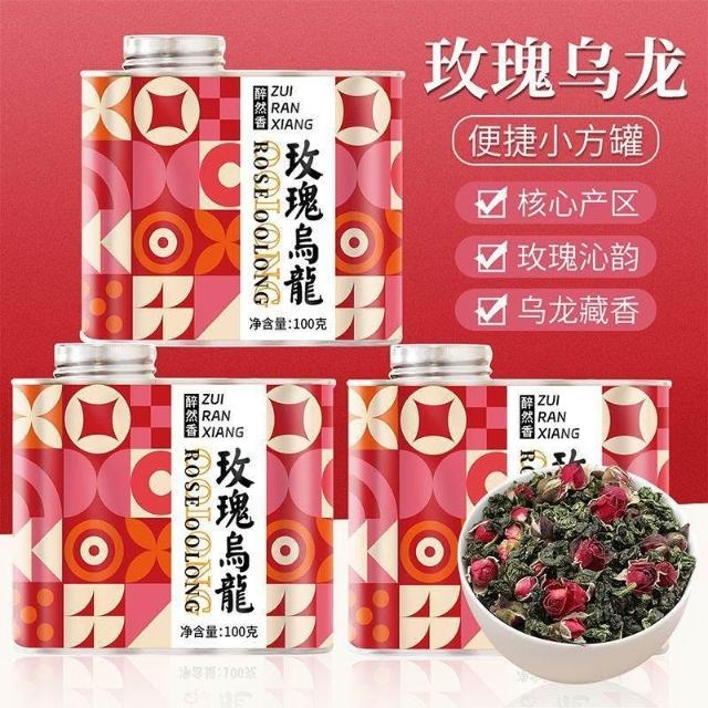 文文優選醉然香 玫瑰烏龍正宗烏龍茶玫瑰花茶濃香型茶葉飲料茶原葉罐裝