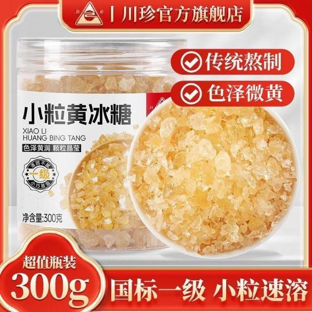 文文優選川珍小粒黃冰糖300g罐裝國標一級食用糖紅燒肉煲湯炒糖色烘培家用