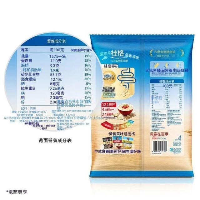单单優選桂格原味燕麥片即食純麥衝飲營養早餐速食代餐飽腹