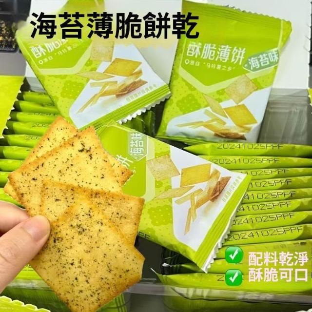 海苔薄脆餅乾超薄鹹味獨立休閒小吃追劇食品整箱零食