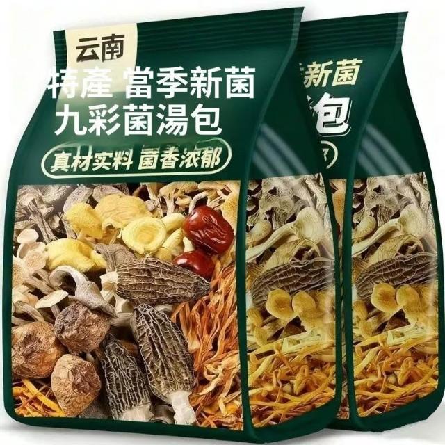 雲南九彩菌湯包特產大羊肚菌茶樹竹蓀蟲草花煲湯