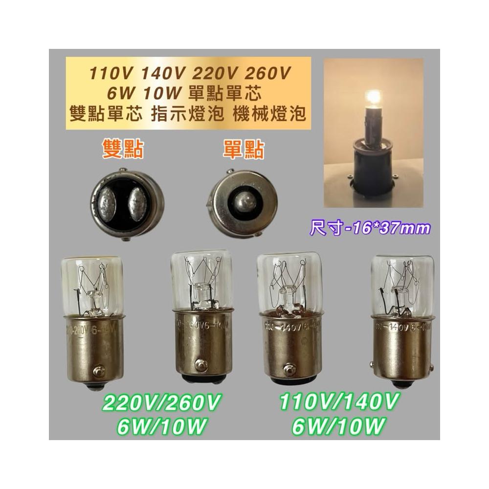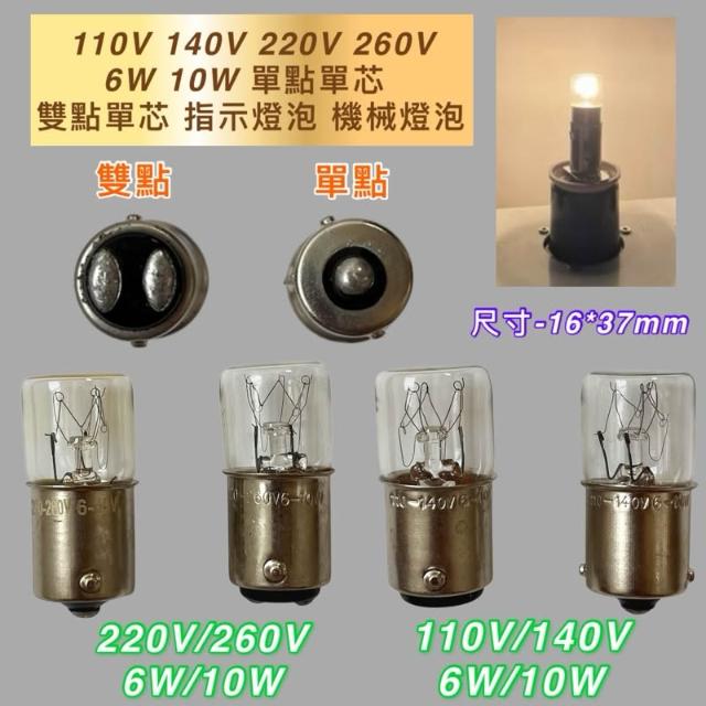 指示燈泡 110V 140V 220V 260V 6W 10W 單點 雙點 單芯 機械燈泡 機器燈泡