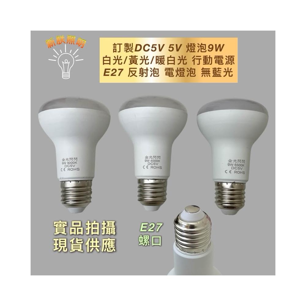 DC5V 5V 燈泡 9W 白光/黃光/暖白光 行動電源 E27 反射泡 電燈泡 無藍光