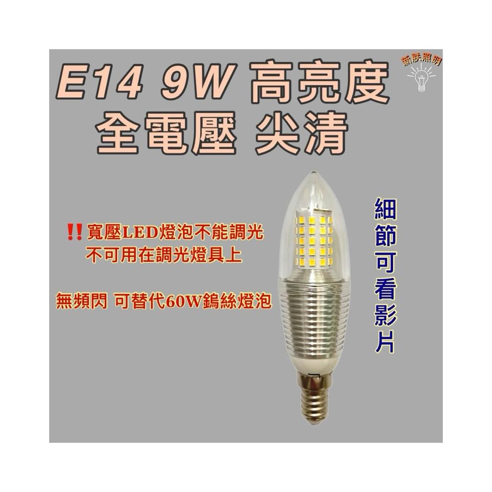 E14 9W 蠟燭燈泡 尖清 全電壓 110V 220V 亮度大於鎢絲燈泡60W 白光 黃光