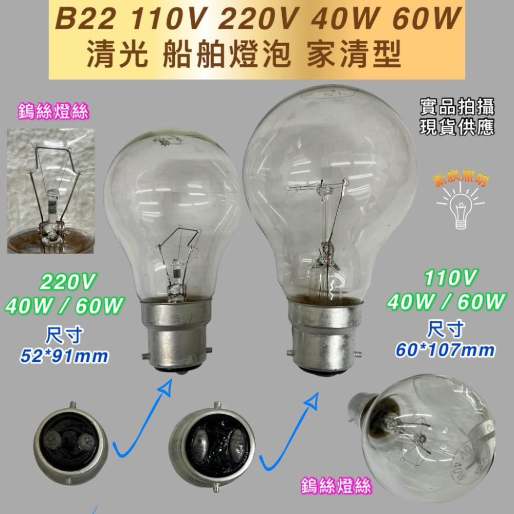 鎢絲燈泡 耐震燈泡 110V 220V 40W 60W 100W B22 清光 船舶燈泡 家清型B-22