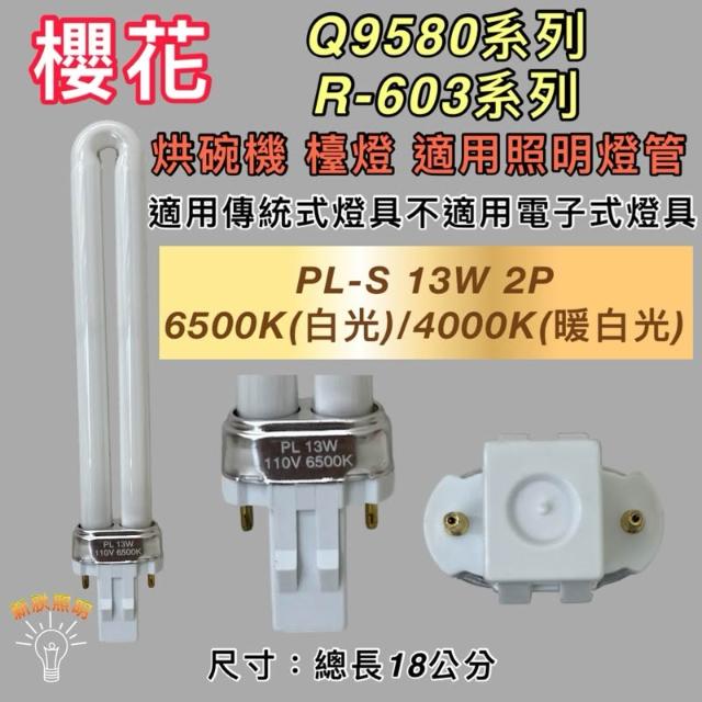 櫻花烘碗機適用 照明用燈管 PL-13W Q9580 R-603 傳統安定器(GX23-2)