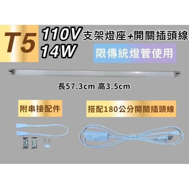 110V T5 14W 支架燈座 開關插頭線