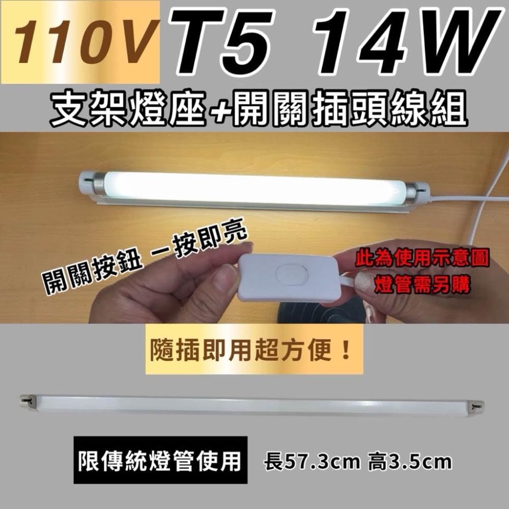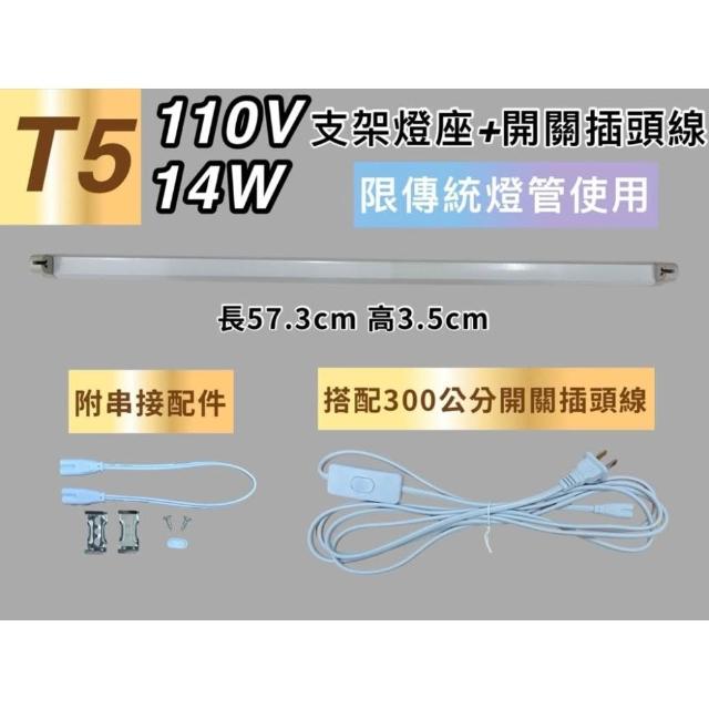 110V T5 14W 支架燈座 開關插頭線