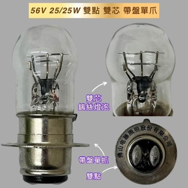 鎢絲燈泡 48V 56V 25W 35W 雙點雙芯 帶盤 雙爪高低腳 大燈 電動自行車 電動機車堆高機