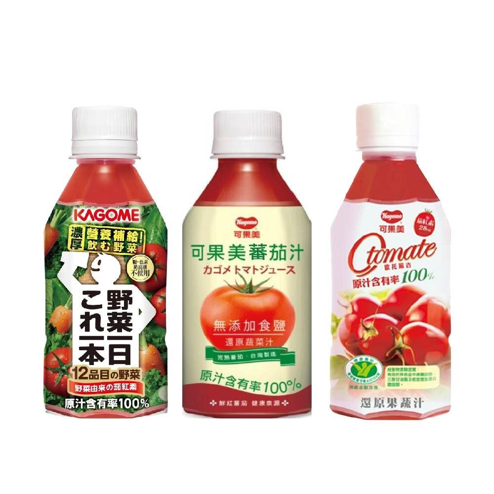 可果美280ml|一日野菜綜合蔬果汁(24入/箱)、100%蕃茄檸檬汁(24入/箱)、100%無鹽番茄汁(24入/箱)