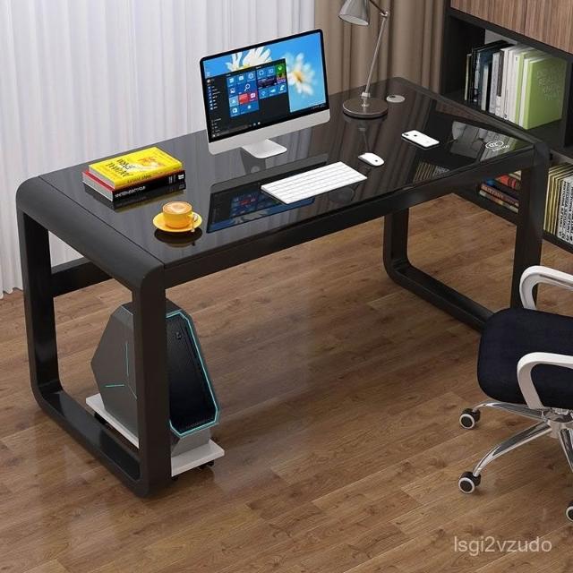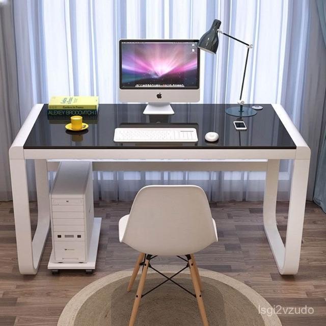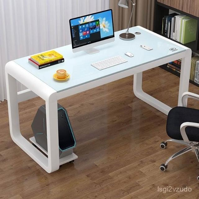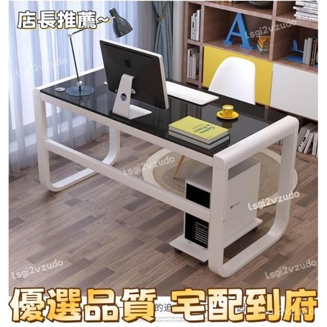 優選品質 宅配到府鐵藝書桌長方形臥室小戶型電腦桌玻璃書桌學生電腦桌鋼化玻璃書桌 K4O3