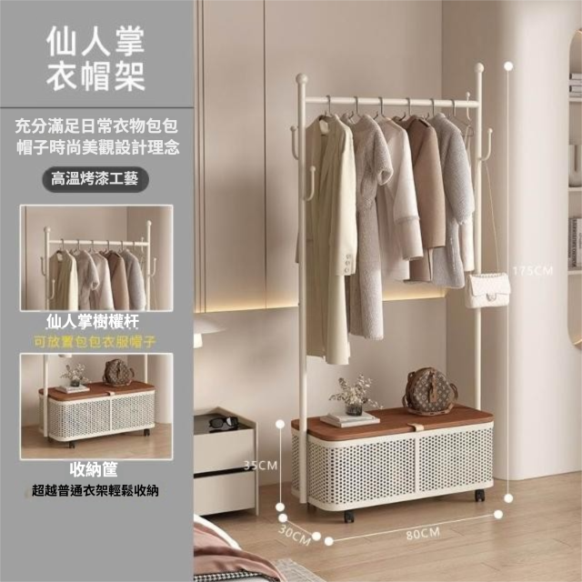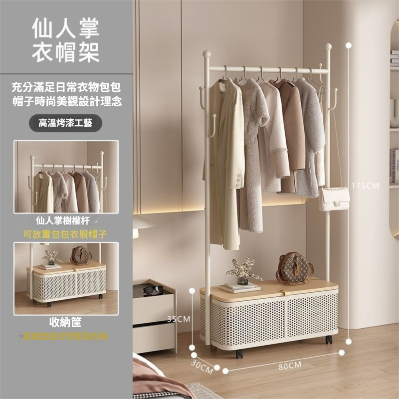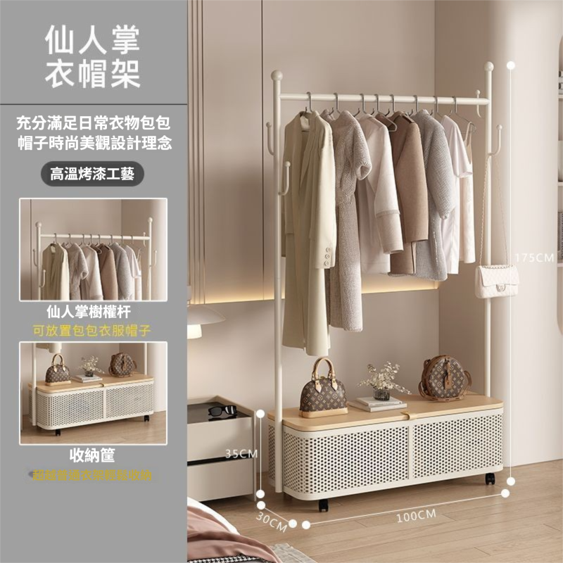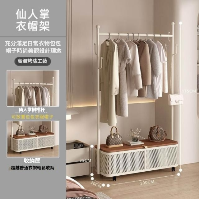 高品質 百搭北歐式衣帽架 簡易臥室置物架 奶油風落地架 立式衣架 家用掛衣架 收納可移動 衣服置物架 房間衣架 免運