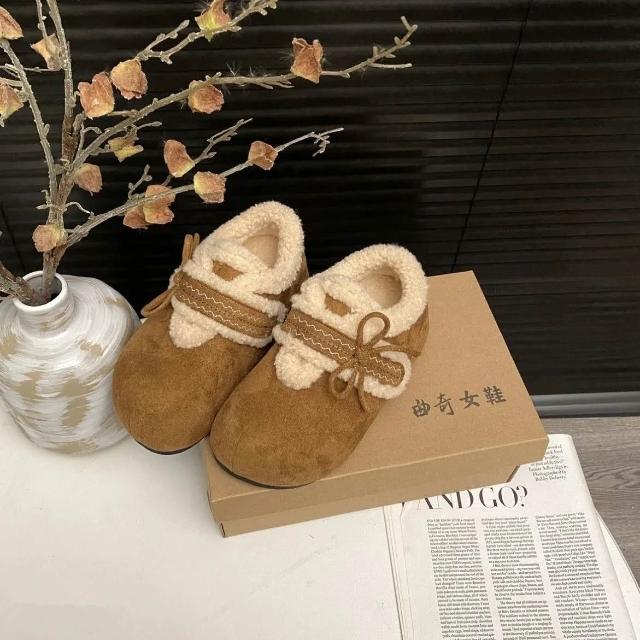 勃肯鞋冬季加絨刺繡蝴蝶結新款全包毛毛棉鞋保暖內增高鞋女