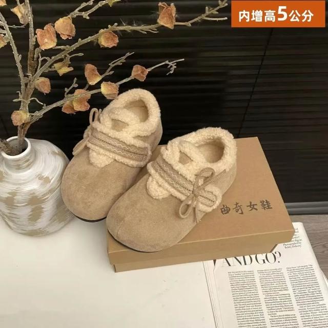 勃肯鞋冬季加絨刺繡蝴蝶結新款全包毛毛棉鞋保暖內增高鞋女