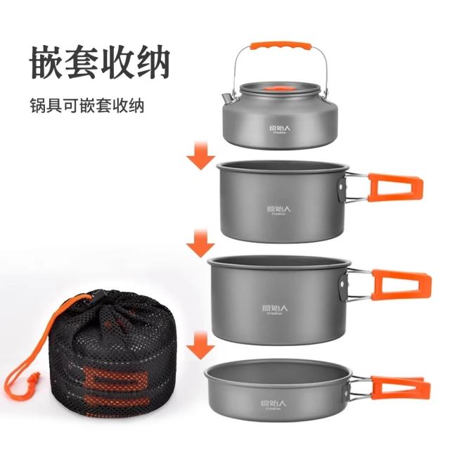 原始人露營炊具戶外鍋水壺煎鍋裝備便攜式野外露營餐具套鍋鍋具用品