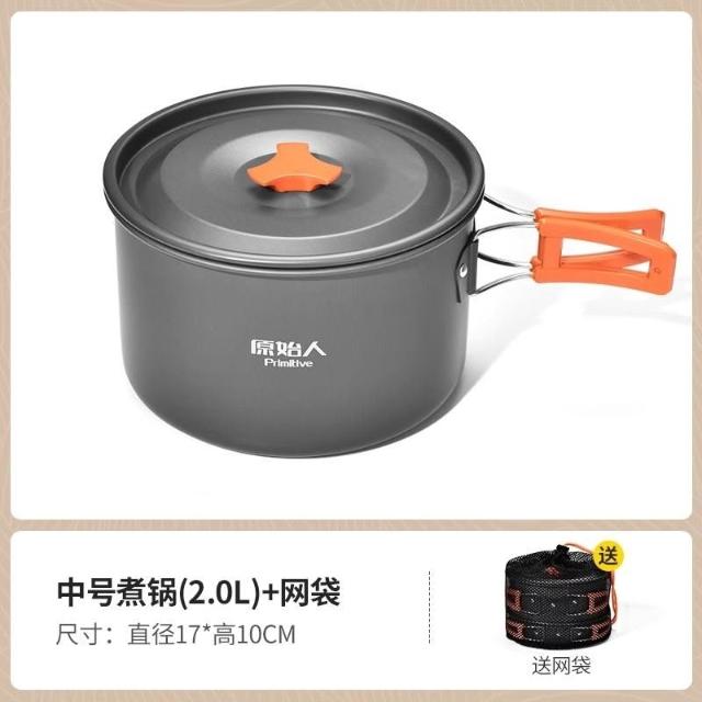 原始人露營炊具戶外鍋水壺煎鍋裝備便攜式野外露營餐具套鍋鍋具用品