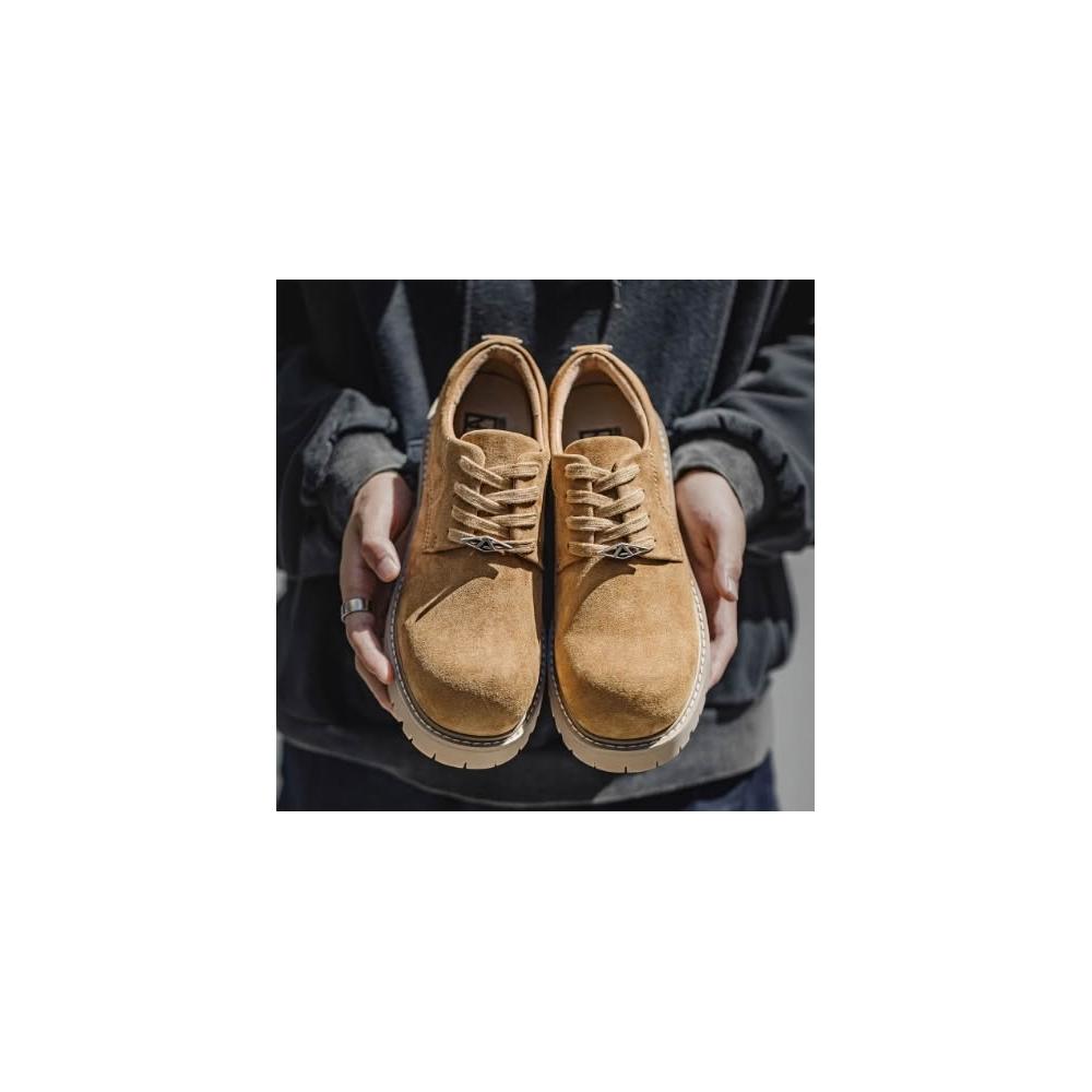 MRA棕色德比鞋男圓頭復古英倫低筒大黃靴厚底增高大頭工裝皮鞋
