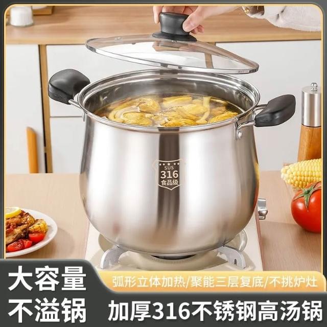 德國316不銹鋼湯鍋家用帶蓋高湯鍋加厚雙層蒸鍋電磁爐煤氣爐通用