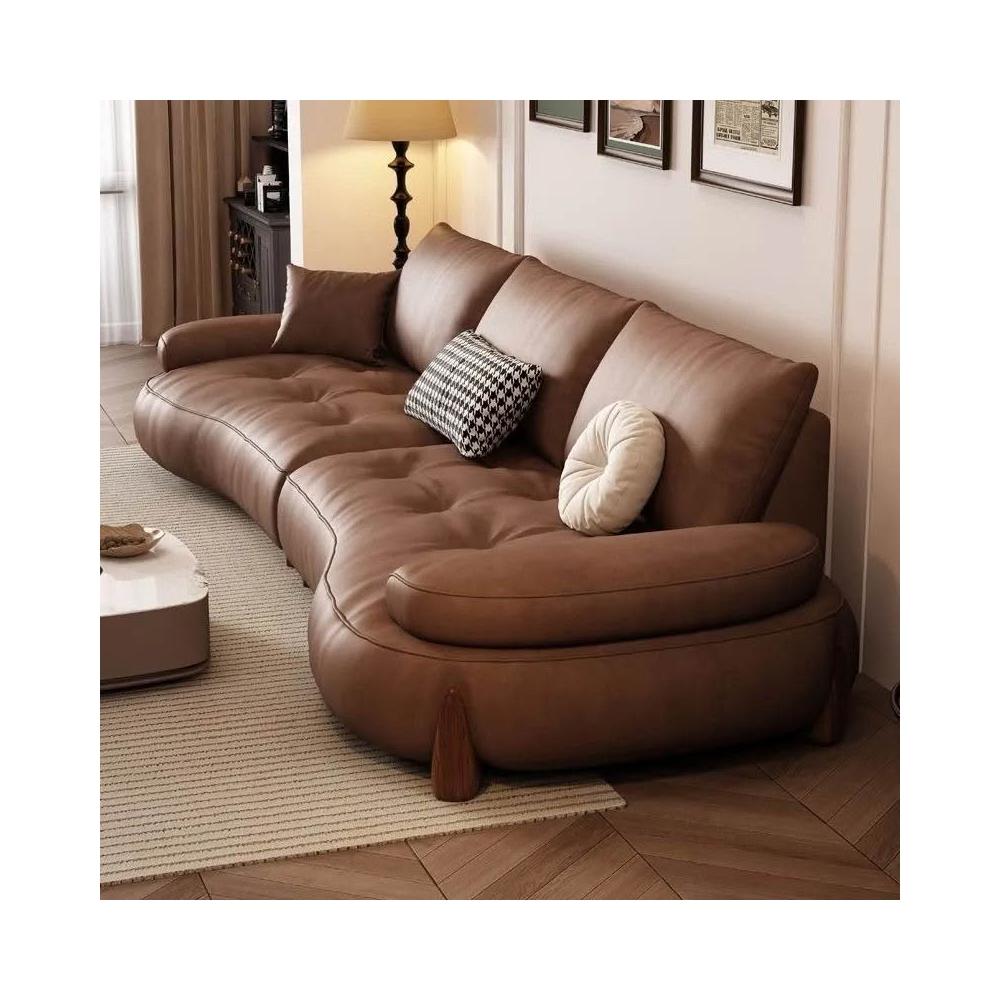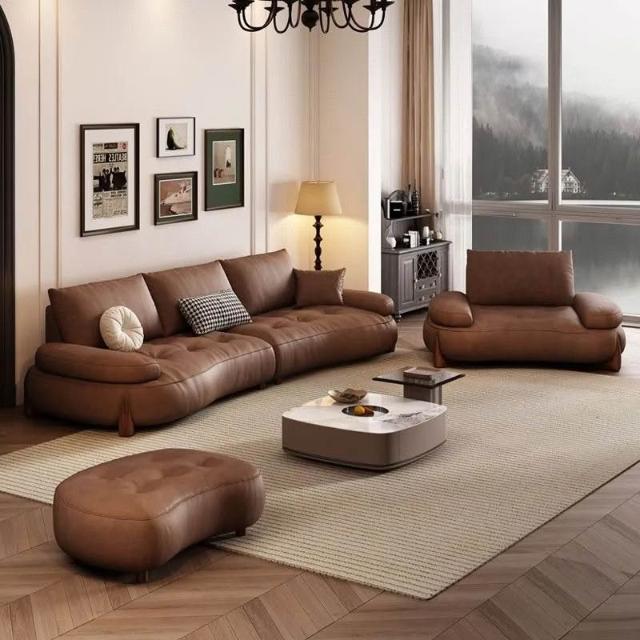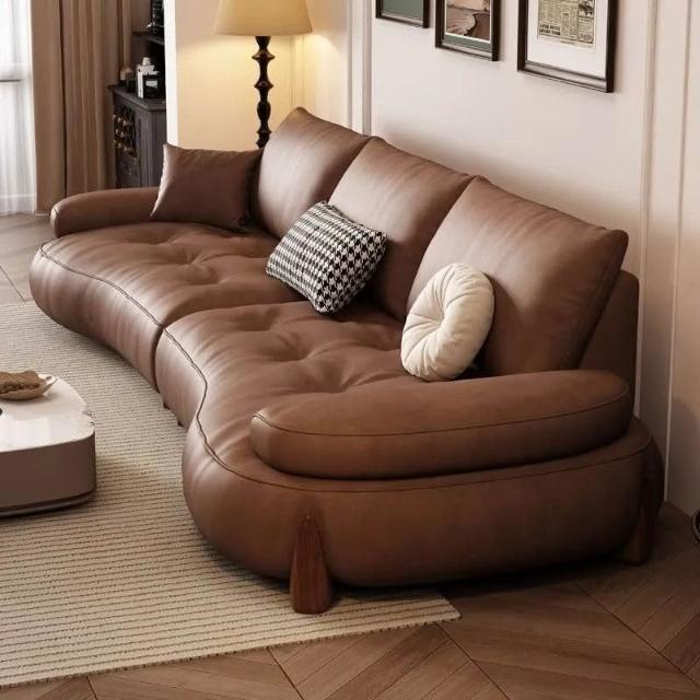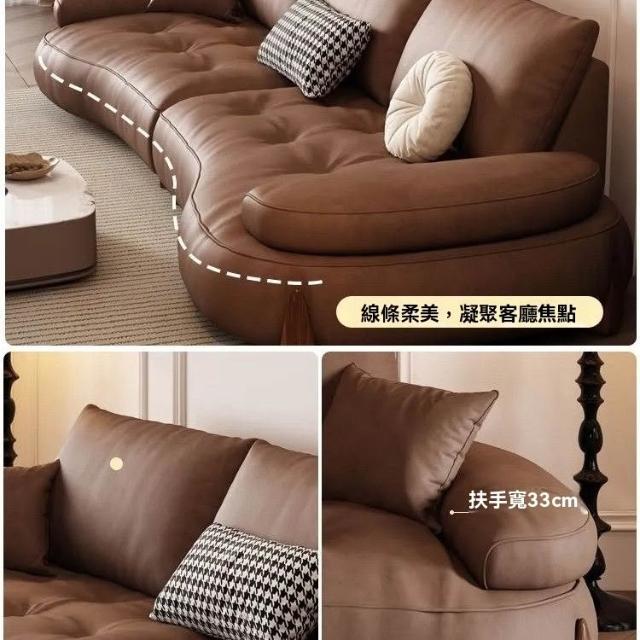 ✨超低下殺✨頭層真皮沙發大小戶型客廳整裝組合設計師復古風弧形真皮實木沙發