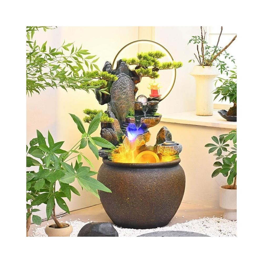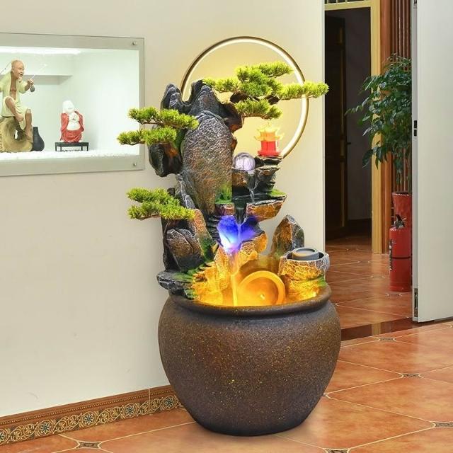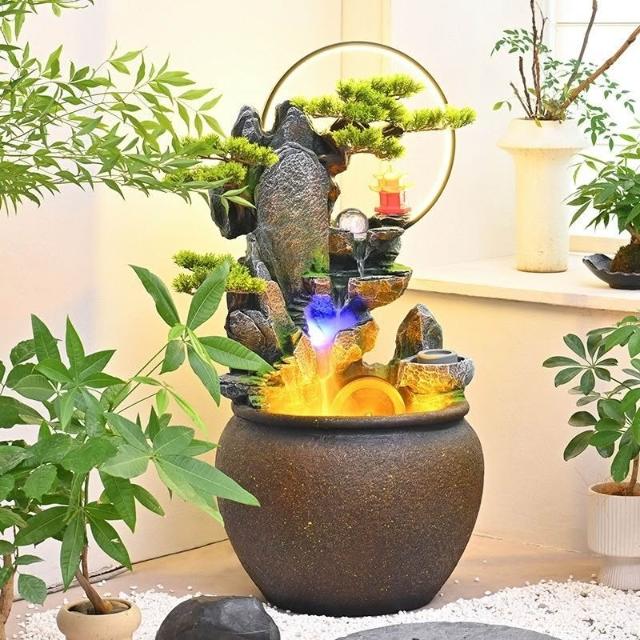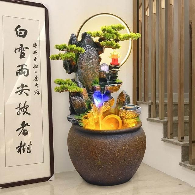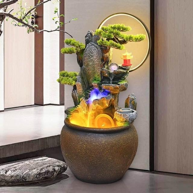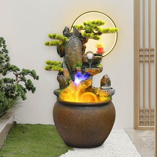 新中式流水客廳庭院風光流水擺件環保樹脂迴圈水景觀專業設計適合