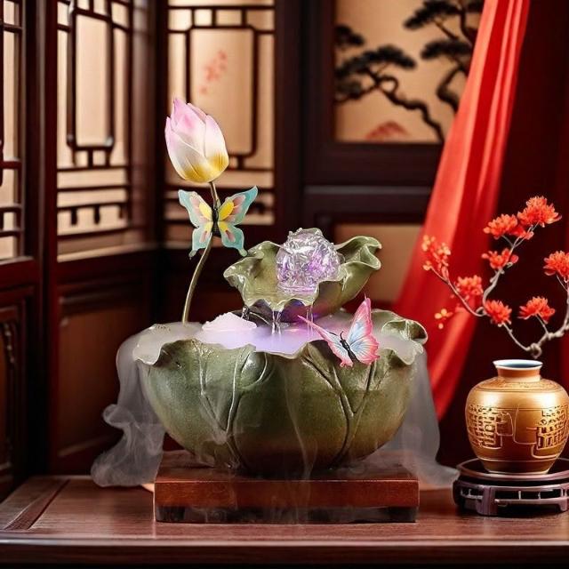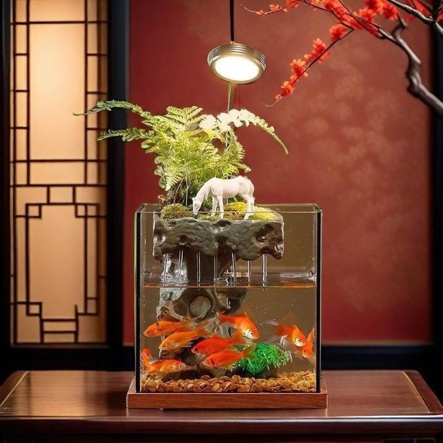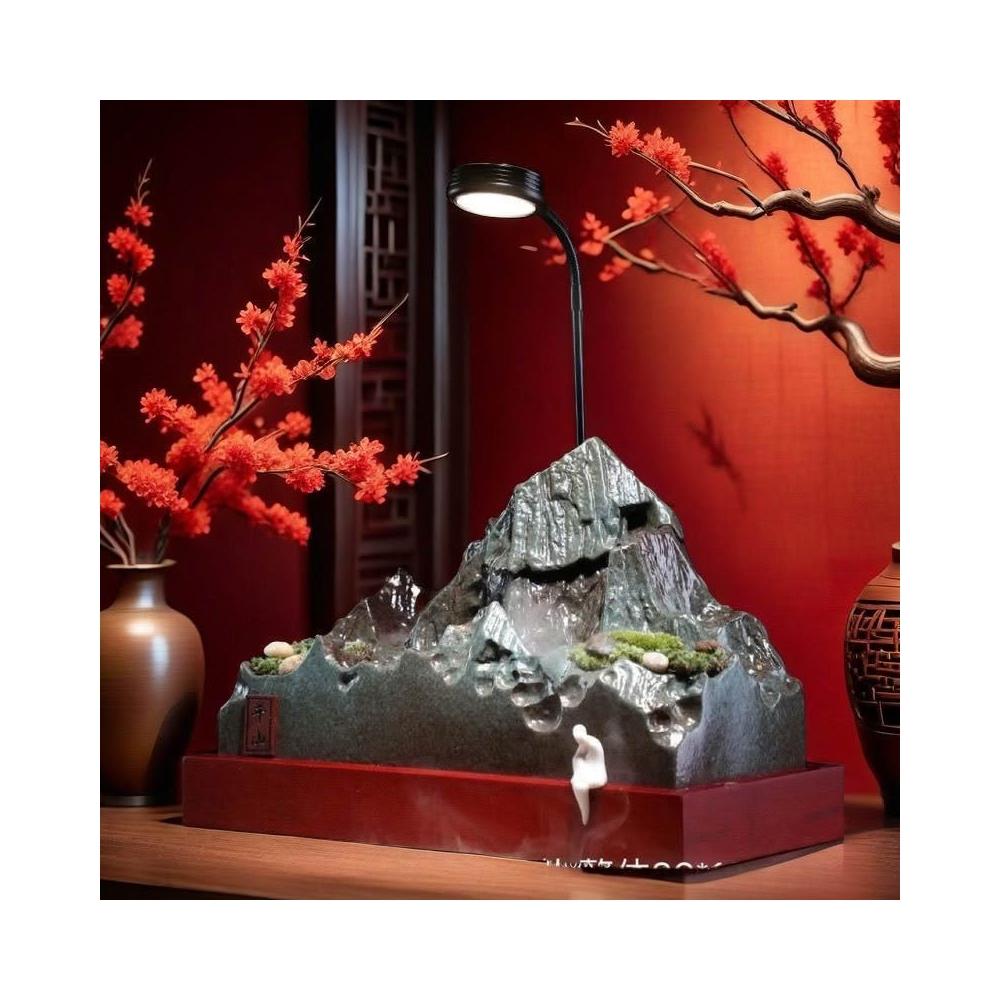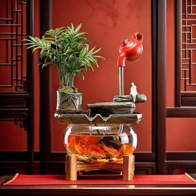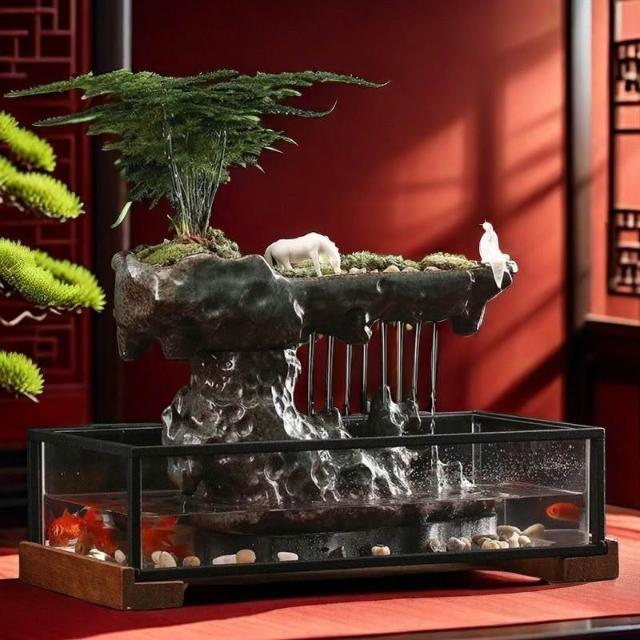 中國風山水魚缸造景中式家居室內客廳辦公玄關轉運生財流水壺擺件