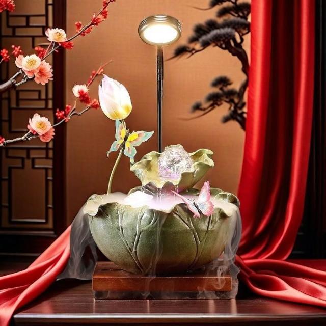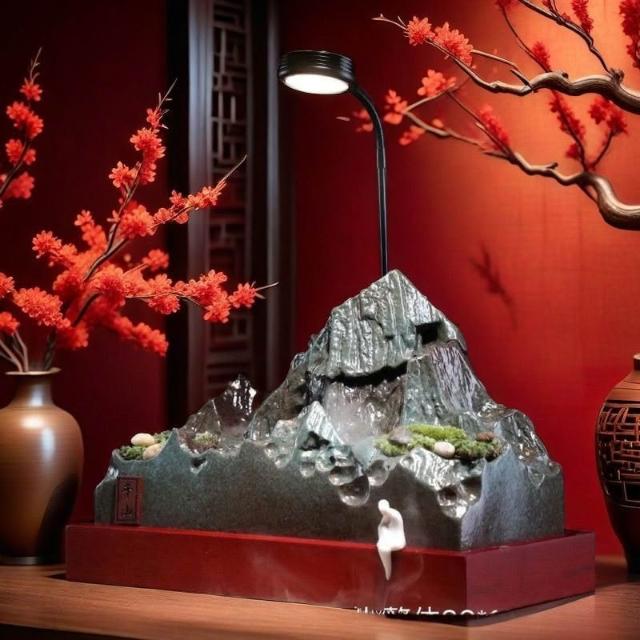 中國風山水魚缸造景中式家居室內客廳辦公玄關轉運生財流水壺擺件