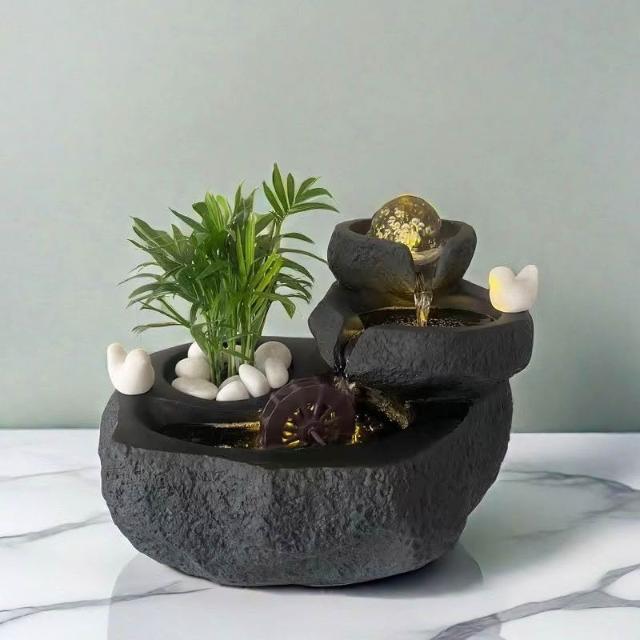 玄關流水擺件加濕器淨化盆景桌面公司店鋪居家風水球迴圈水