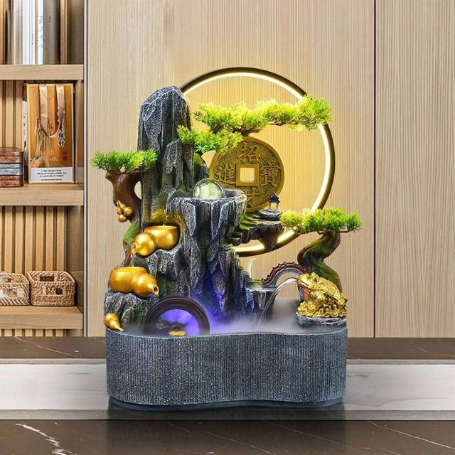 假山流水擺件風水輪噴泉辦公室客廳玄關招財桌面擺件開業喬遷禮品