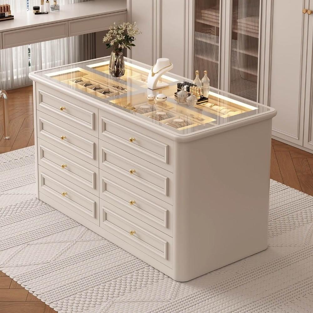 法式衣帽間中島櫃首飾櫃高端奢華臥室步入式中島臺奶油風展示鬥櫃