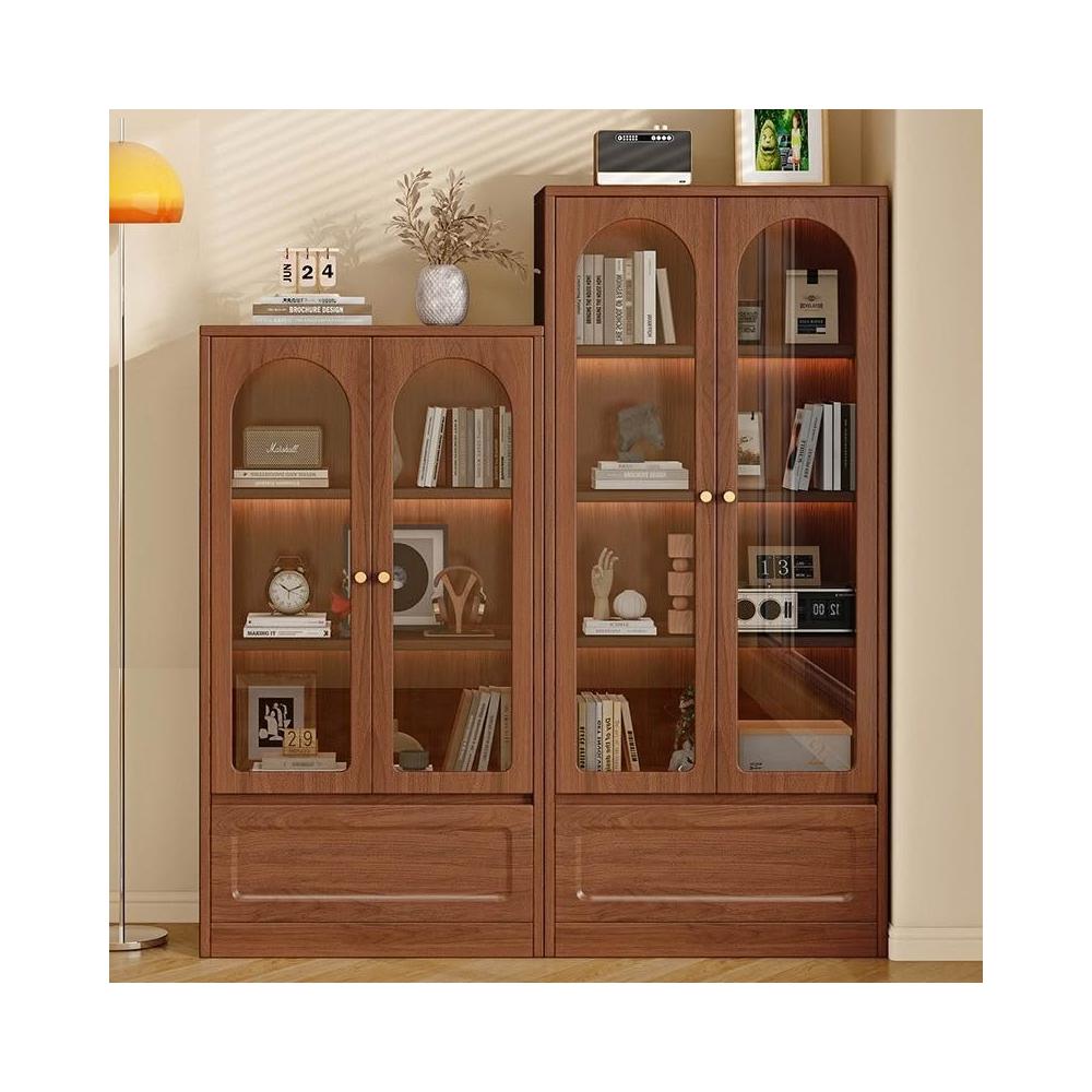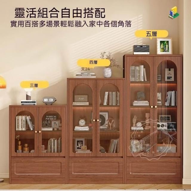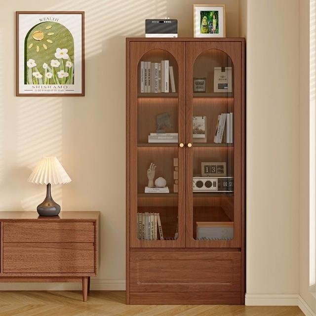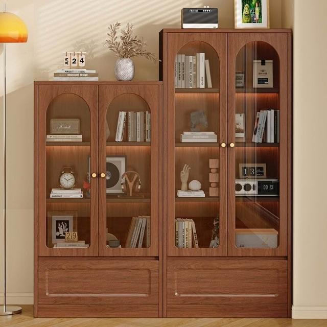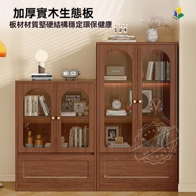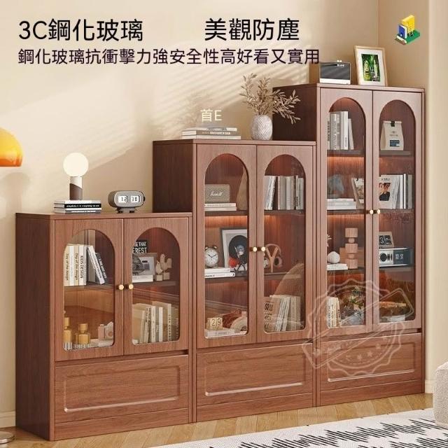 ✨超低下殺✨書櫃實木帶玻璃門防塵收納櫃客廳書架展示櫃中古風置物櫃儲物櫃子