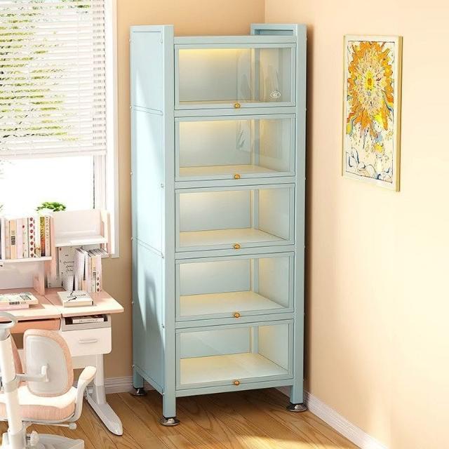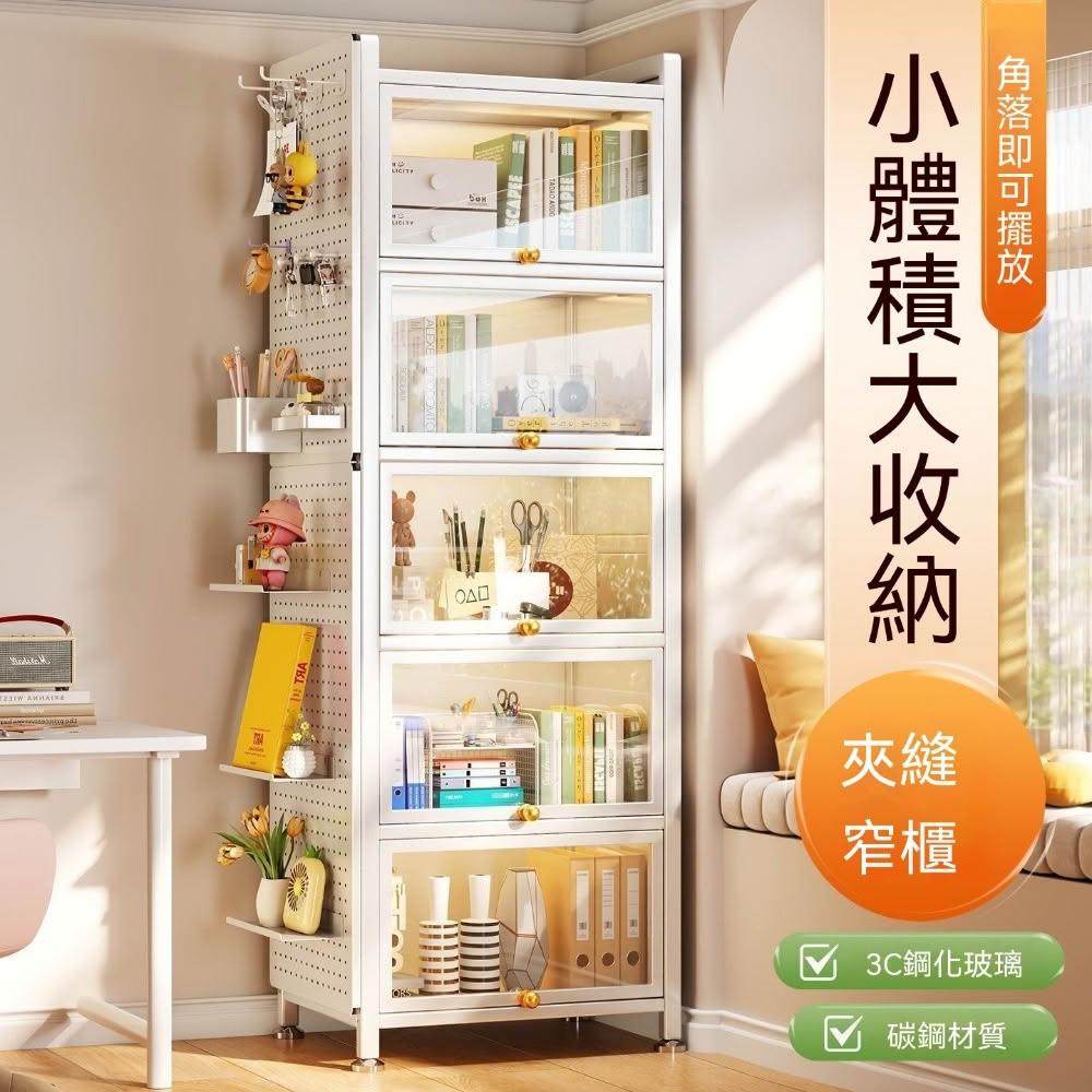 夾縫書櫃玻璃門透明展示櫃鋼制收納儲物櫃手辦櫃陳列櫃二次元痛櫃