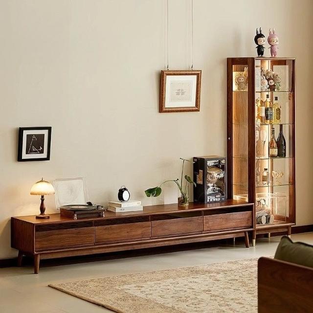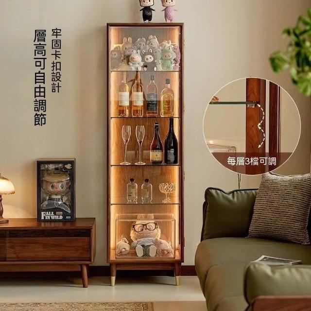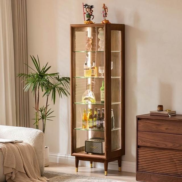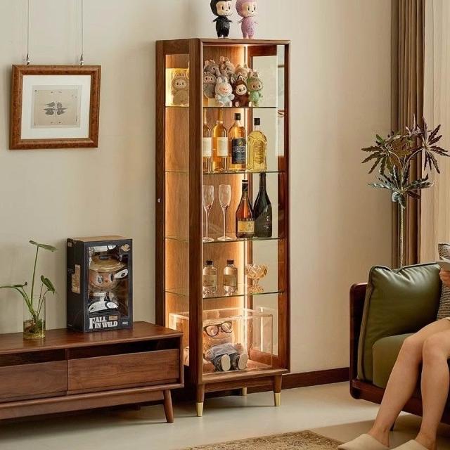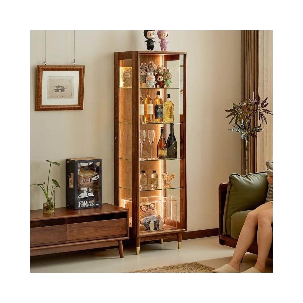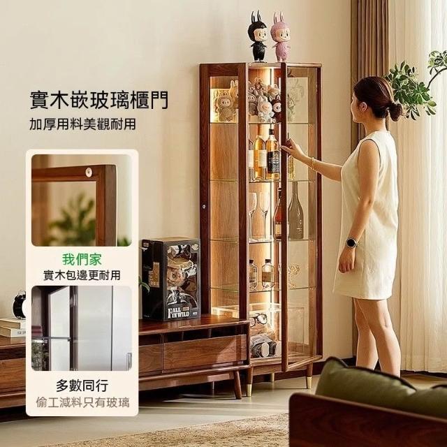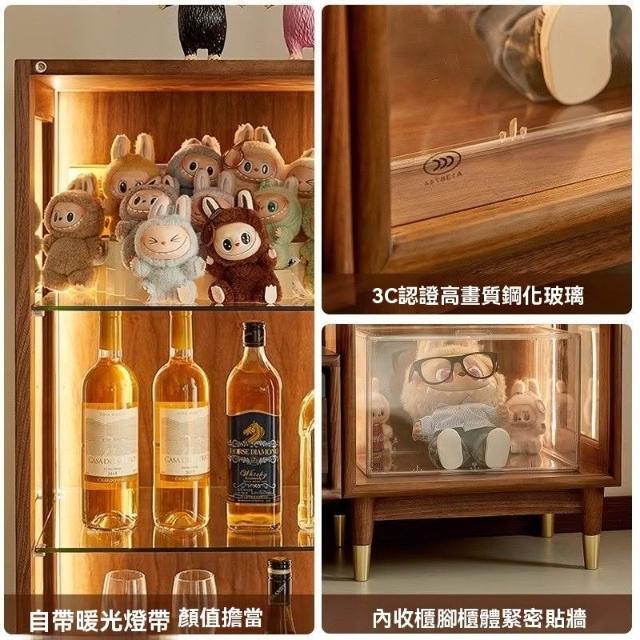 北美黑胡桃木展示櫃實木酒櫃透明模型櫃玻璃陳列邊櫃靠牆手辦櫃子