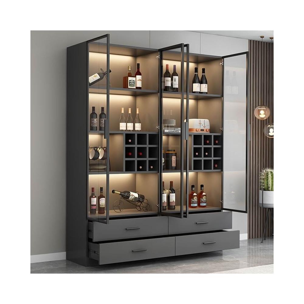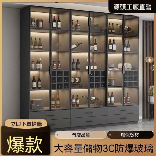 定制抽屜儲物玻璃門灰酒櫃輕奢客廳靠牆一體展示櫃陳列家用手辦櫃