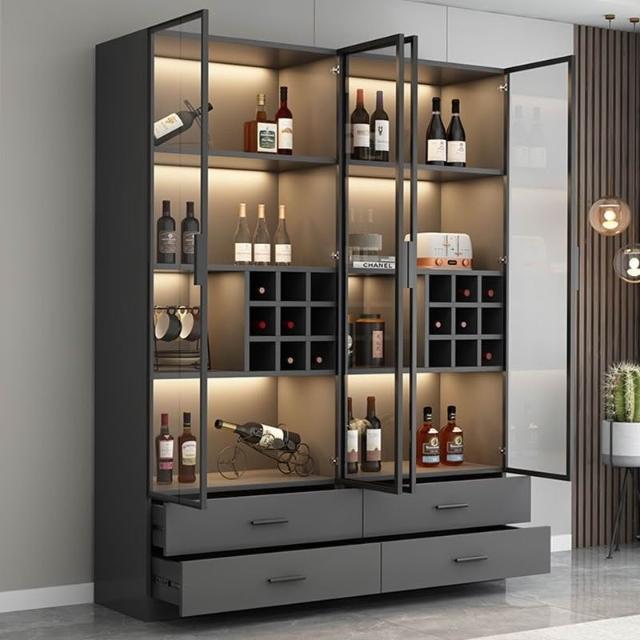定制抽屜儲物玻璃門灰酒櫃輕奢客廳靠牆一體展示櫃陳列家用手辦櫃