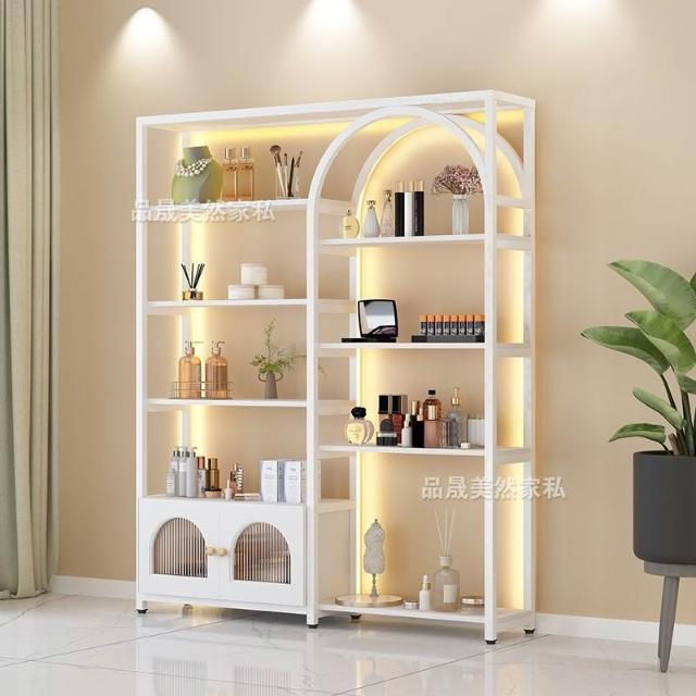 美容院展示櫃美甲油膠展示架化妝品帶燈多層置物架商用陳列櫃貨架