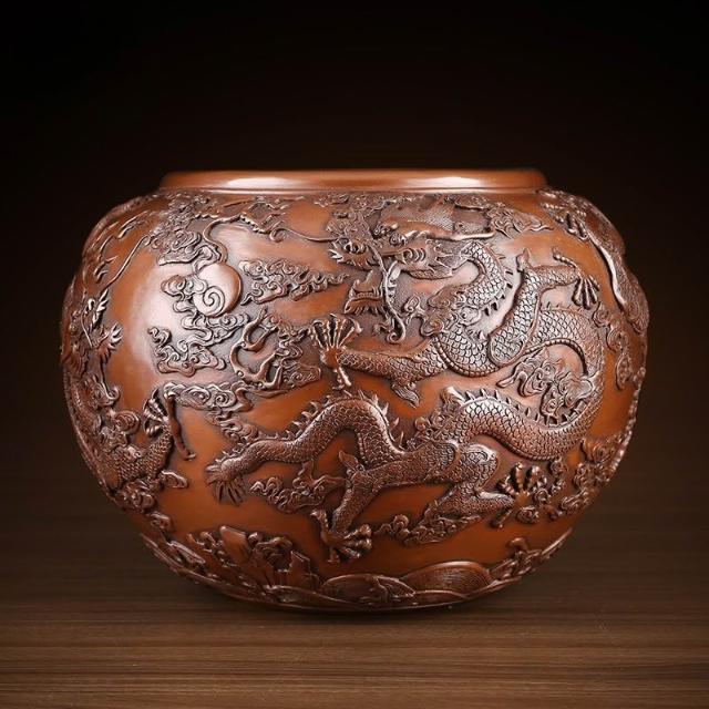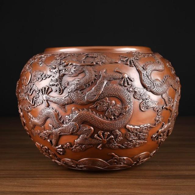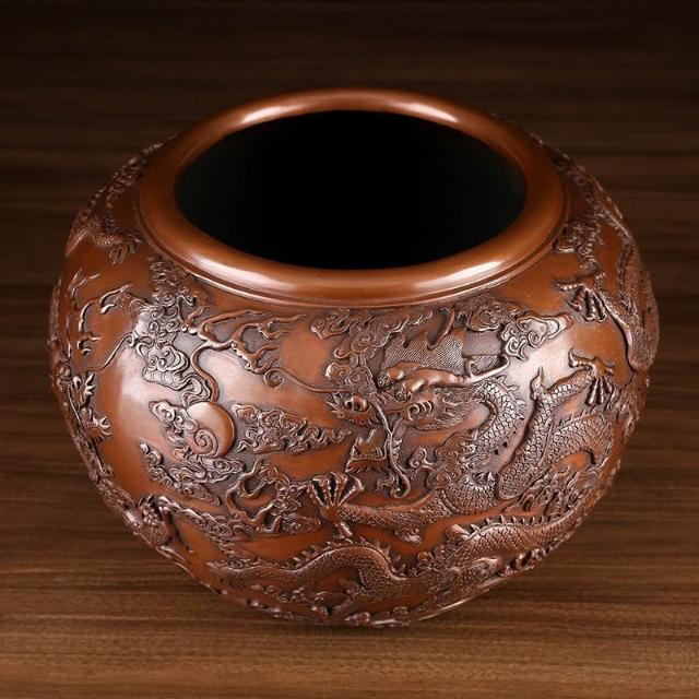 ✨超低下殺✨紫銅聚寶盆擺件海水龍缸新中式家居辦公室公司開業喬遷送禮品