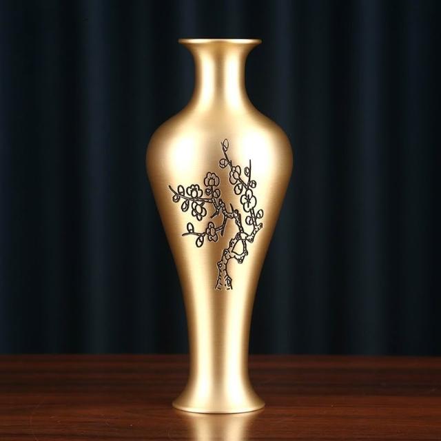 黃銅雕花花瓶新中式家居客廳辦公室裝飾品創意擺件幹花插花器