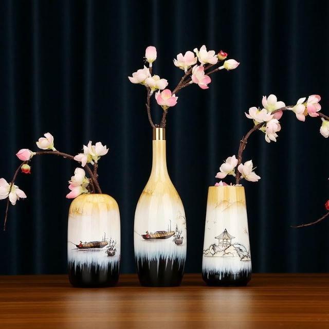黃銅雕花花瓶新中式家居客廳辦公室裝飾品創意擺件幹花插花器