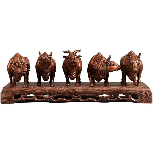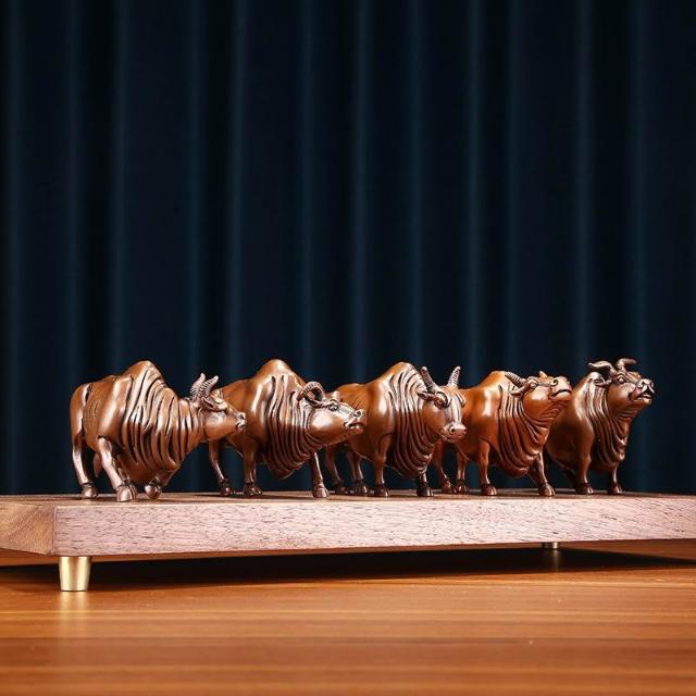 紫銅故宮五福銅牛擺件五牛圖擺設家居辦公室裝飾品喬遷開業禮品