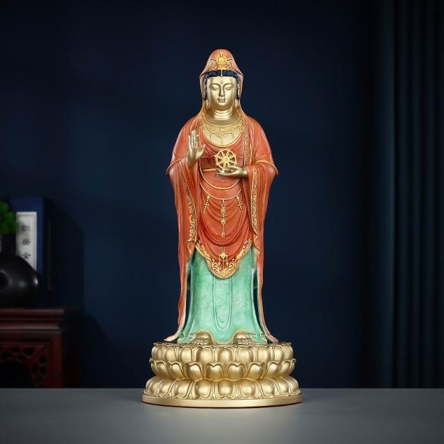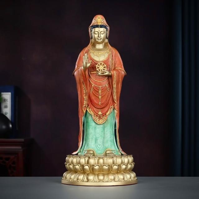 ✨超低下殺✨彩銅觀音像南海法輪觀音菩薩站像家居佛堂供奉擺件裝飾品