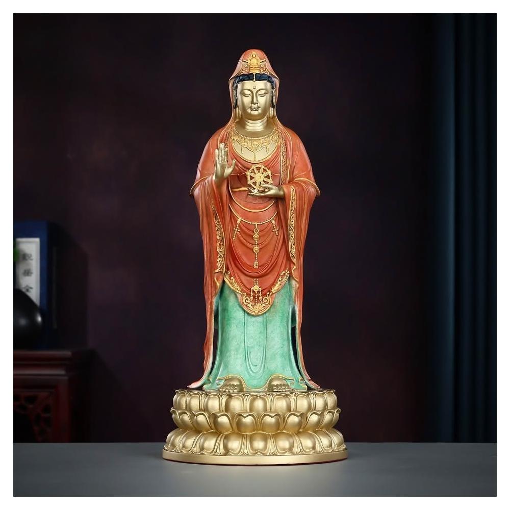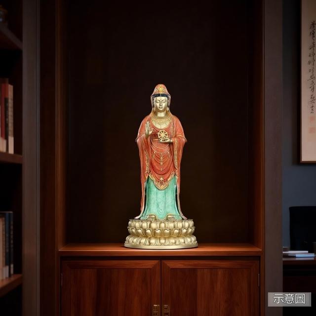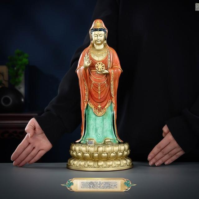 彩銅觀音像南海法輪觀音菩薩站像家居佛堂供奉擺件裝飾品