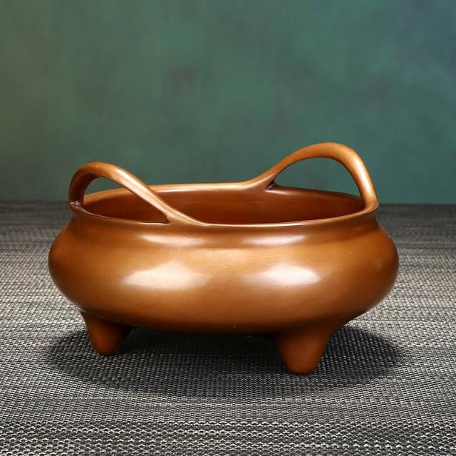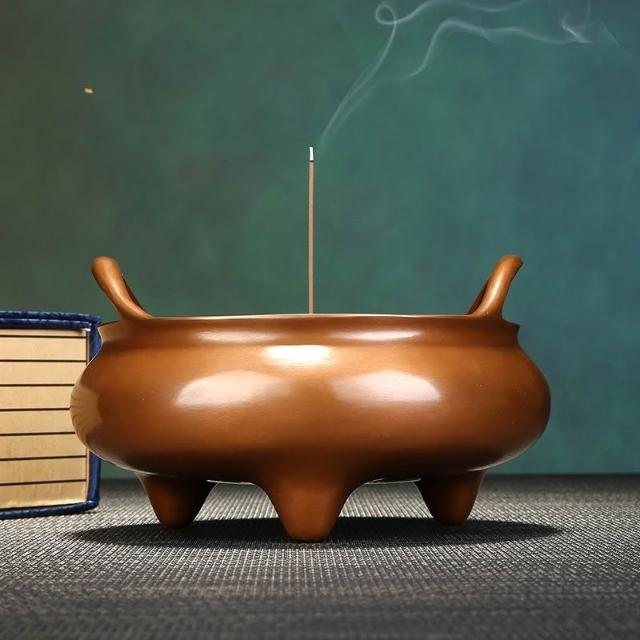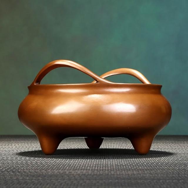 ✨超低下殺✨紫銅喬耳三足爐香爐香薰爐盤香線香家居香道用品仿古大明宣德爐