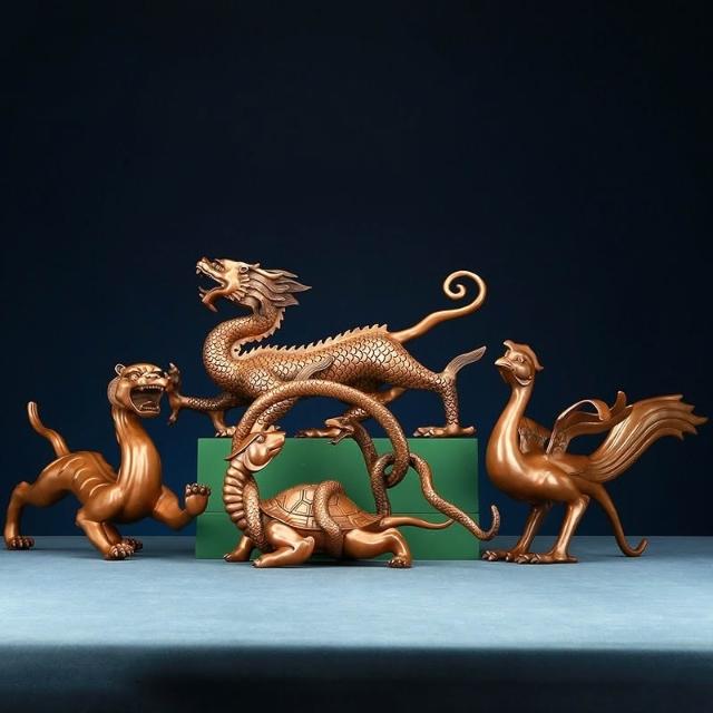 ✨超低下殺✨紫銅龍擺件青龍白虎朱雀玄武《四神獸》中式家居公司喬遷開業禮品
