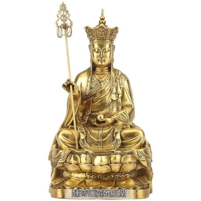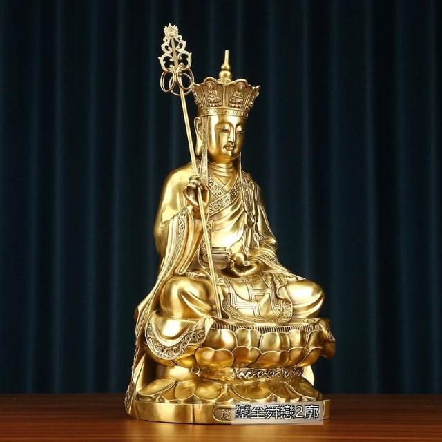 黃銅地藏王菩薩銅佛人物坐像客廳桌面中式家居用品銅工藝品擺件