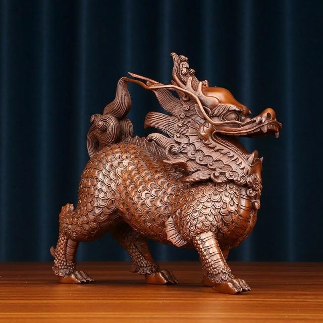 紫銅麒麟擺件一對裝飾品新中式家居玄關銅工藝品公司喬遷開業禮品