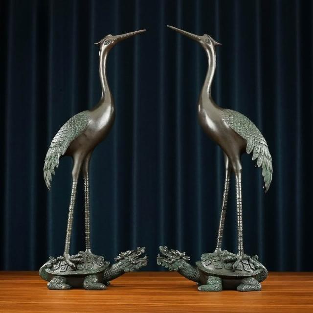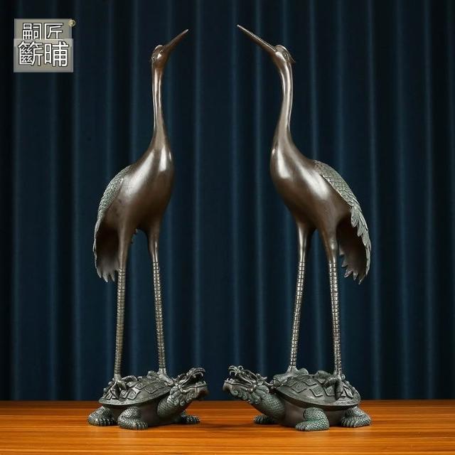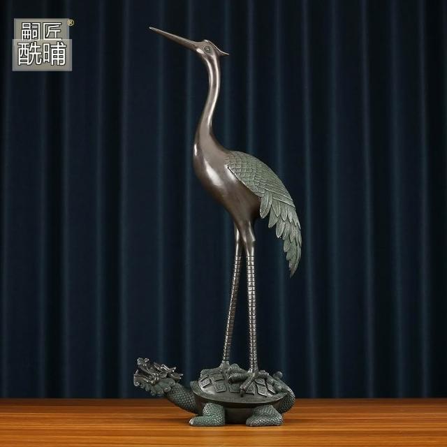 黃銅鶴擺件龍頭龜鶴裝飾品大號龜鶴延年銅工藝品仙鶴公司開業禮品