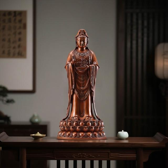 ✨超低下殺✨紫銅南海觀音菩薩擺件站像家居佛堂裝飾品家用供奉佛像觀音菩薩像